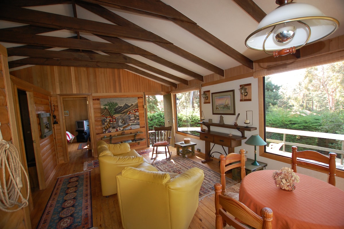 🌲 Your perfect escape to enjoy our charming classic and accessible cabin with private terrace strategically located near restaurants, diving centers, and stunning natural attractions, nestled in the heart of Quintay. Ideally designed for couples looking for serenity and adventure lovers who enjoy nature, running trails, beach walks and forest. ♿Our space is also wheelchair accessible, designed for travelers with disabilities.