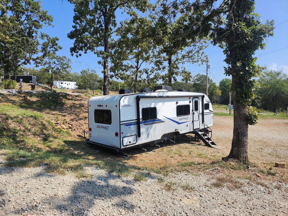 If Rueben Cogburn was looking for a place to stop on the True Grit Trail, this would be it. 2022 Sonic Venture is the ultimate glamping experience. Sleeps 3 comfortably. Bedroom with RV queen bed and a pull out sofa in living room. Bathroom has sink & toilet. Cozy living room & kitchen with refrigerator, microwave, keurig coffee maker, single burner, dinette, sofa. ** stove & oven has been disabled ** shower not available in RV; full showers available at clubhouse