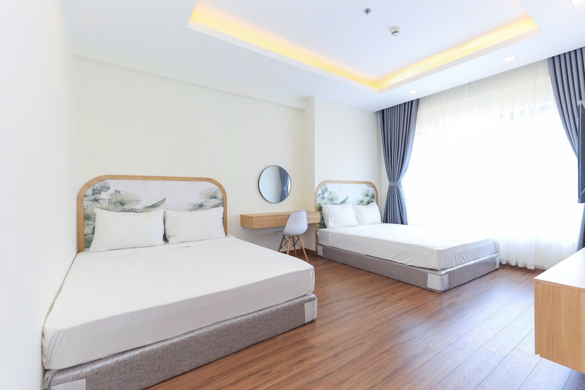 - Område på næsten 100 m2 - Kun 2 minutters kørsel til havet - Beliggende i et praktisk centrum for at flytte til spisesteder og rejser - Egnet til store familier - Fuldt udstyret køkkenredskaber, så gæsterne kan lave mad derhjemme - Klimaanlæg, blæser, vandvarmer, vaskemaskine, tørretumbler Smart-tv har Netflix. - Sodavand, mineralvand, øl, nudler,... - Swimmingpool i lejligheden - LEJLIGGENHED - 3 soveværelser, 1 sofa