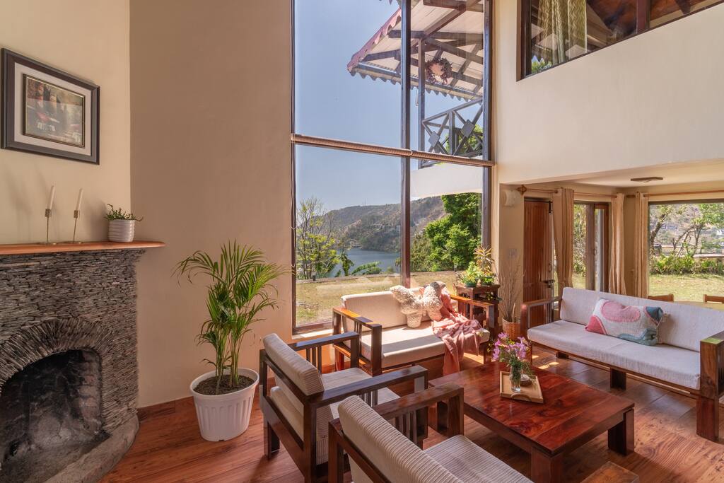 Our home was featured in the Interiors magazine ‘Inside Outside’. Get away from it all and far from the madding crowd. Enjoy views of the valley and the stunning Kumaon peaks from every room. This is a retreat for day dreamers, nature lovers, bird watchers. There is no TV in the house. The beautiful forest walks and spending time in nature is all you need! Wake up to the sound of birds and look east for the spectacular sunrise! Not suitable for infants toddlers and younger children.