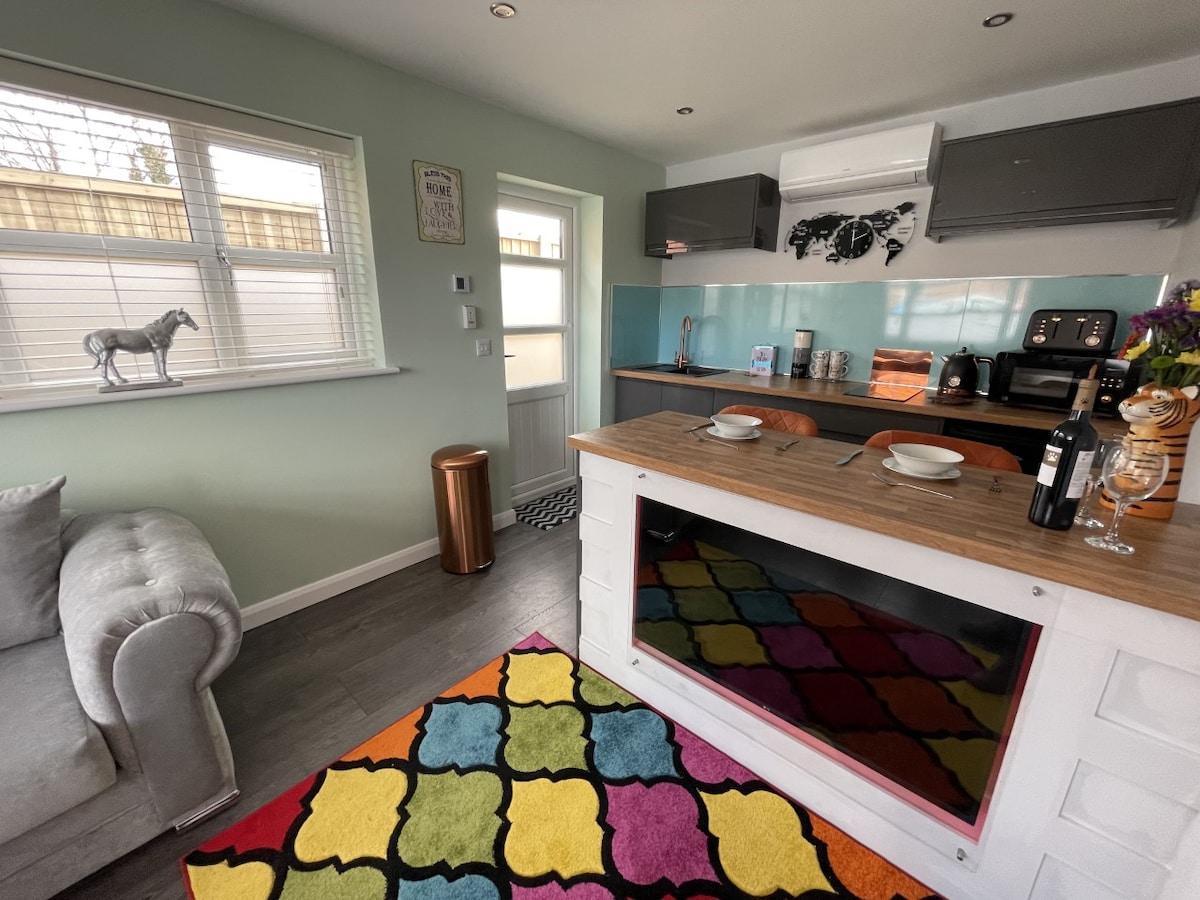 En hyggelig renoveret hytte på grunden til det historiske Grade 2 opført tidligere B&B Wilmot House. Et stenkast væk fra floden Trent, en populær fiskedestination, Sundown adventure land og historiske Lincoln City. Vi har en fantastisk pub, The White Swan & Curry House The Maharaj. Vi har et veludstyret køkken, bruser, toilet, soveværelse med dobbeltseng, opholdsområde med sofa, bord og stol., Wi-Fi-aktiveret tv og god wi-fi-hastighed. Parkering på stedet, eksklusiv have og opladning af elbiler med solceller 30p KW