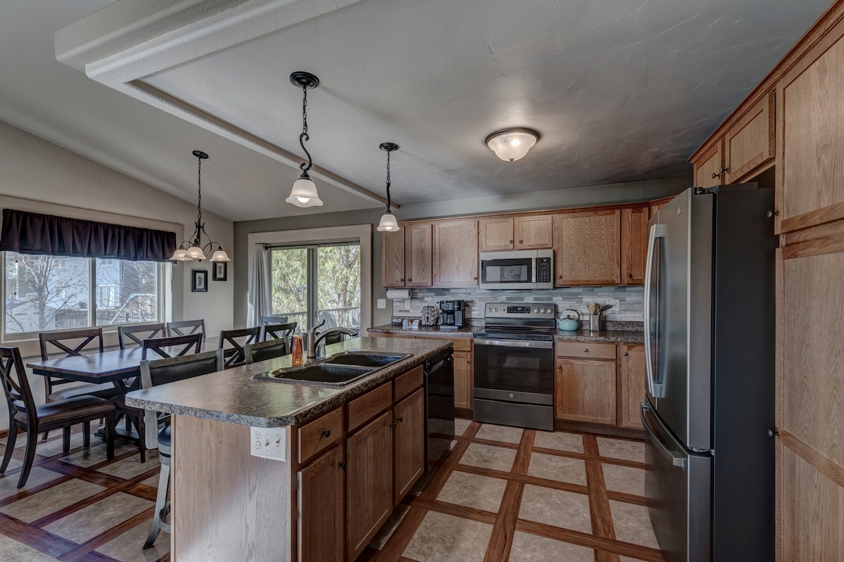 To store møblerede soveværelser, nye queensize-dobbeltsenge Poolbord og dart Stor stue med ny sovesofa Ombygget badeværelse 65'' UHD Smart TV, Dish DVR, Blu-ray Pool og rekreative faciliteter, sæsonbestemt Højhastighedsinternet via wi-fi Udendørs terrasse med siddepladser Gasgrill Billardbord og dart Køleskab/fryser i fuld størrelse Konvektionsovn Induktionskogeplade Mikrobølgeovn Keurig-kaffe og morgenmadssnacks Vaskemaskine og tørretumbler Tæt på Rapid Citys shopping og spisesteder Natur og dyreliv Fantastiske stjerner om natten.