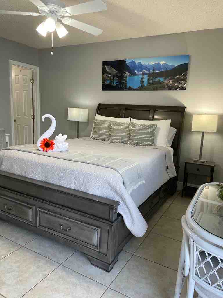 Velkommen til vores fuldt renoverede atelierlejlighed! Dette er det perfekte sted til et afslappende og bekvemt ophold i det solrige Palm Beach County. Nyd et badeværelse med en HydroJet-brusebad og et fuldt udstyret køkken med alt, hvad du skal bruge for at føle dig hjemme. Nem adgang til alle seværdigheder i området. Inden for få minutter kan du nå lufthavnen, stranden, restauranter, supermarkeder, parker og de store motorveje I-95 og FL Turnpike. Vi tilbyder indtjekning kl. 13.00, queensize-dobbeltseng, 1 parkeringsplads