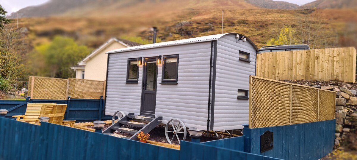 Trails End is a handcrafted shepherds hut nestled in a quiet village on the shores of Loch Duich. This tiny home has a modern living space which is suited to 2 people, with a double bed and single bunk, a bathroom and kitchen area complete the shepherds huts interior. The private outside space is wonderful for soaking in the atmosphere of the loch and surrounding mountains. It is a fantastic base for exploring the local area with many attractions close by or a rest stop during a walk.