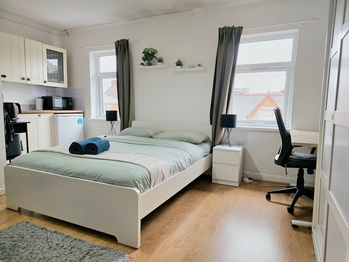 Stilfuld lejlighed med ét soveværelse i hjertet af Reading centrum, perfekt til forretningsrejsende, entreprenører eller weekendbesøgende. Lejligheden ligger kun en kort gåtur fra Reading Station, butikker, restauranter og barer og byder på et lyst, åbent opholdsområde, hurtig wi-fi og et fuldt udstyret køkken til behagelige korte eller lange ophold. Gæsterne kan nyde et rummeligt soveværelse, et moderne badeværelse og et afslappende opholdsområde, der er perfekt til at slappe af efter en dag i byen.