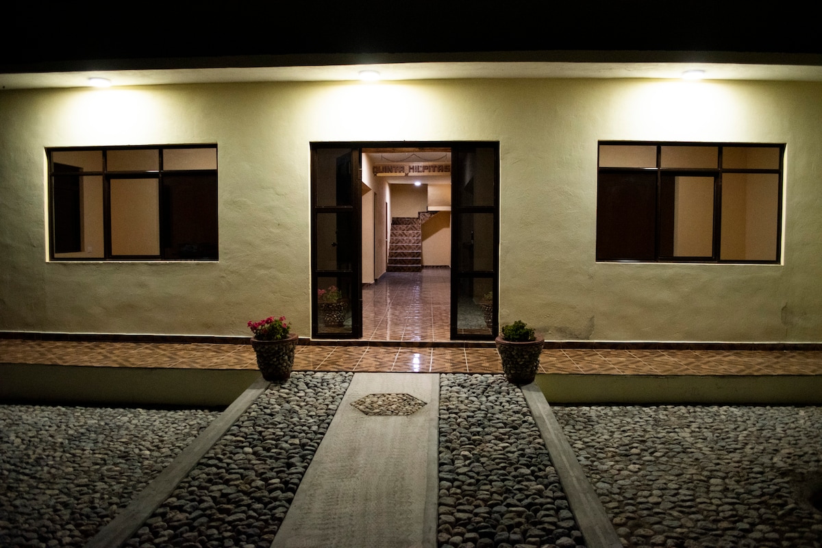 Es un espacio único para la familia o grupos pequeños, sus áreas de sala y comedor son ideales para la convivencia. Cuenta con servicios extraordinarios generando un plus de comodidad ante tus necesidades : *Sanitización de habitación y superficies. *Cocina integral con agua filtrada. *Tv y Wifi. *Chimenea de leña y calentadores eléctricos. *Baño completo. *Patio interior. *Terraza y Asador con utensilios básicos (disponibilidad bajo reservación).