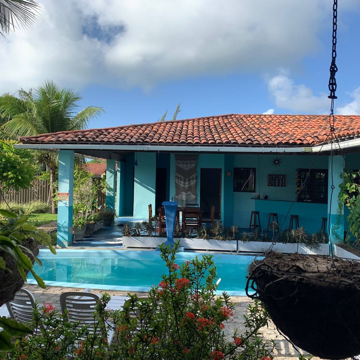 Em frente ao coqueiral, à passos da Praia! É um lugar muito seguro, ótimo para mulheres que viajam sozinhas. Espaço aconchegante, simples e limpo. Dispôe de suíte, cama de casal, geladeira, fogão, mesa, guarda roupa duas portas, etc Na frente existe uma cafeteria que oferece ótimas opções se a pessoa não quiser cozinhar. Oferecemos aulas de surf com uma profissional. Você que procura paz, tranquilidade, mar, surf, encontrou um lugar que vai lhe dar oportunidade de sentir feliz, em casa.