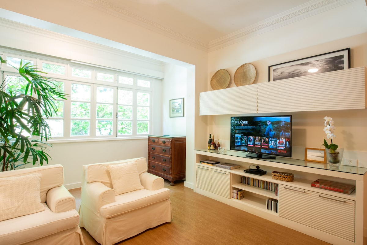 Rummelig 143 kvadratmeter (1540 kvadratfod) lejlighed med 3 soveværelser 2 badeværelser og meget komplet køkken. Smukke solopgange og havbriser. Uhindret udsigt over havet og Rio strandkultur. Fremragende restauranter i nærheden og udendørslivet lige uden for døren. Praktisk til alle former for transport, shopping og turistattraktioner. Lejligheden har alle bekvemmelighederne i dit hjem, herunder alt, hvad du skal bruge for at lave mad! Vi tilbyder en unik oplevelse, der er designet til at optimere tiden og holde den stressfri