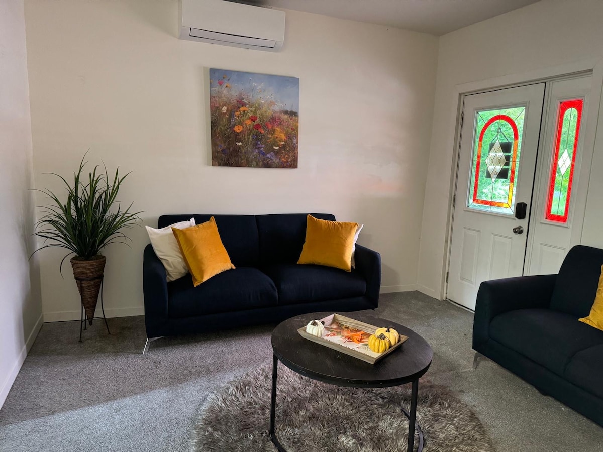 🎬 Velkommen til vores 850 kvadratmeter store loft med biograf-tema i Milton! Nyd en ægte biografoplevelse med en 135" projektorskærm, 75" tv og surroundlyd. 🏡 Funktionerne omfatter en hyggelig queensize Murphy-seng, sovesofa, mørklægningsgardiner, 9-11 fods lofter, fuldt udstyret køkken og et 3-delt badeværelse. 📍 Kun 5 minutters kørsel til downtown Milton, der ligger over for et bibliotek, en fælles pool og en skøjtebane. Beliggende i et roligt, eksklusivt kvarter med nem adgang til bevaringsområder til vandreture og cykling.