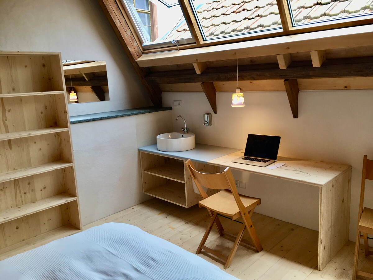 Deiner Seele solls gutgehen hier! Ob als günstige Unterkunft nach einem Seminar, Kurs oder Konferenz in der Stadt, oder als Ausgangspunkt für erholsame Streifzüge durch die lieblichen Hügel und entlang des Erzbachs und der Aare, hier direkt am Waldrand, nur ein Katzensprung vom Stadtzentrum entfernt, bist du herzlich willkommen. Im Schatten der Bäume gehört dir während der Zeit deines Aufenthalts eine kleine Terrasse, der separate Eingang ist über ein paar Treppenstufen zu erreichen.