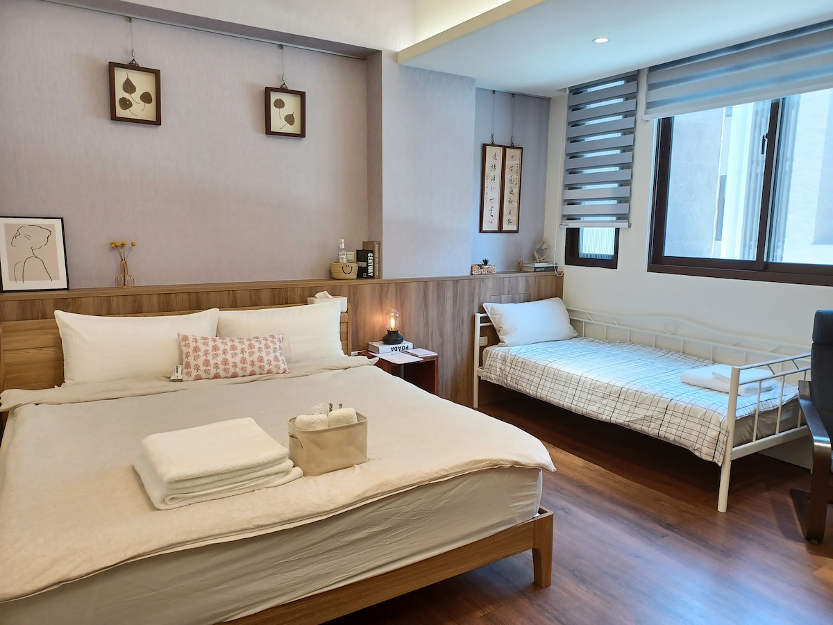 房屋為獨棟透天,房間在2樓,無限♾️田野風光&療癒時光 【一次只接待一組客人】 和室有大金空調(最多3人)/雅房無空調(最多2人),共用一間衛浴。 若3人入住需二間房,另酌收清潔費500元/次。 毛小孩可到2樓但不進和室,並請自行準備牠的床鋪。因與房東同住,請毛小孩務必控制音量。 訂房者必須是入住客人之一唷,方便彼此溝通,歡迎隨時在平台跟管家諮詢~ **We offer two types of bedrooms (with a shared bathroom) : Type A : Tatami (up to 3 guests) *New air conditioner (DAIKIN) Type B : Bedsit ( up to 2 guests) ->No air conditioner If less than 2 guests,we will prepare Type A for you.