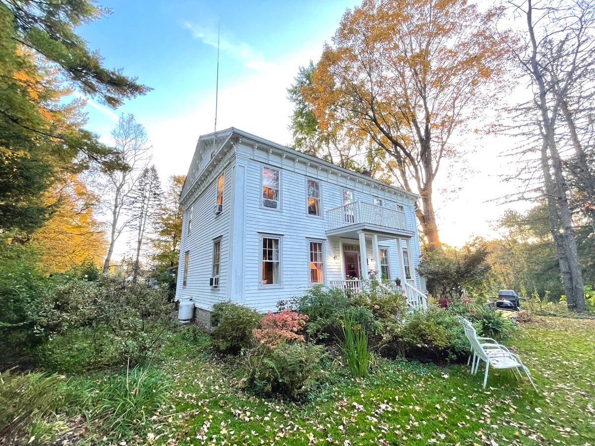 The Writer's Cottage er et lille hvidt hus på en landevej; vintage, komplet og inspirerende. Den er bygget i det 19. århundrede og er perfekt til en solorejsende eller et par rejsende, der udforsker Berkshires og Hudson Valley. Hvis du kan lide rustikke bygninger, er du fan af hytten. Det er en utrolig hyggelig tidsfordrejning. Queensize-dobbeltseng og opholdsrum nedenunder; luftigt loft op ad en smal trappe. Der er en frugtplantage og græsplæne med grill, hængekøje og jernbord.