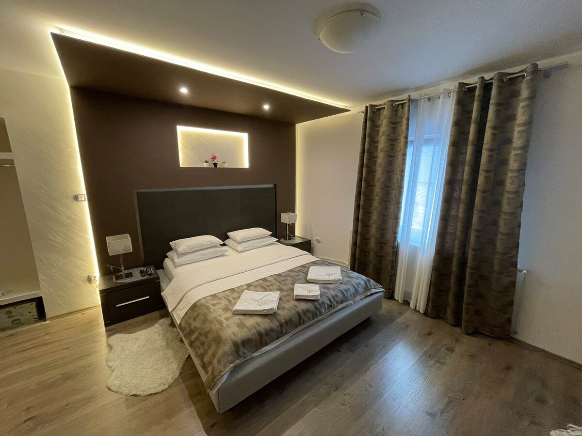 Luksuslejlighed med spa er helt ny og luksuriøst møbleret, i en rolig del af byen tæt på centrum. Den har 2 rummelige soveværelser og en elegant stue. Hovedattraktionen er jacuzzien inde i lejligheden. Interiøret udstråler sofistikeret indretning og en varm atmosfære. Hvert værelse tilbyder en oase af fred, og stuen er et behageligt sted at slappe af. Hele lejligheden er luksuriøst indrettet med omhyggeligt udvalgte detaljer. Nyd denne ekstraordinære oase af komfort og afslapning.