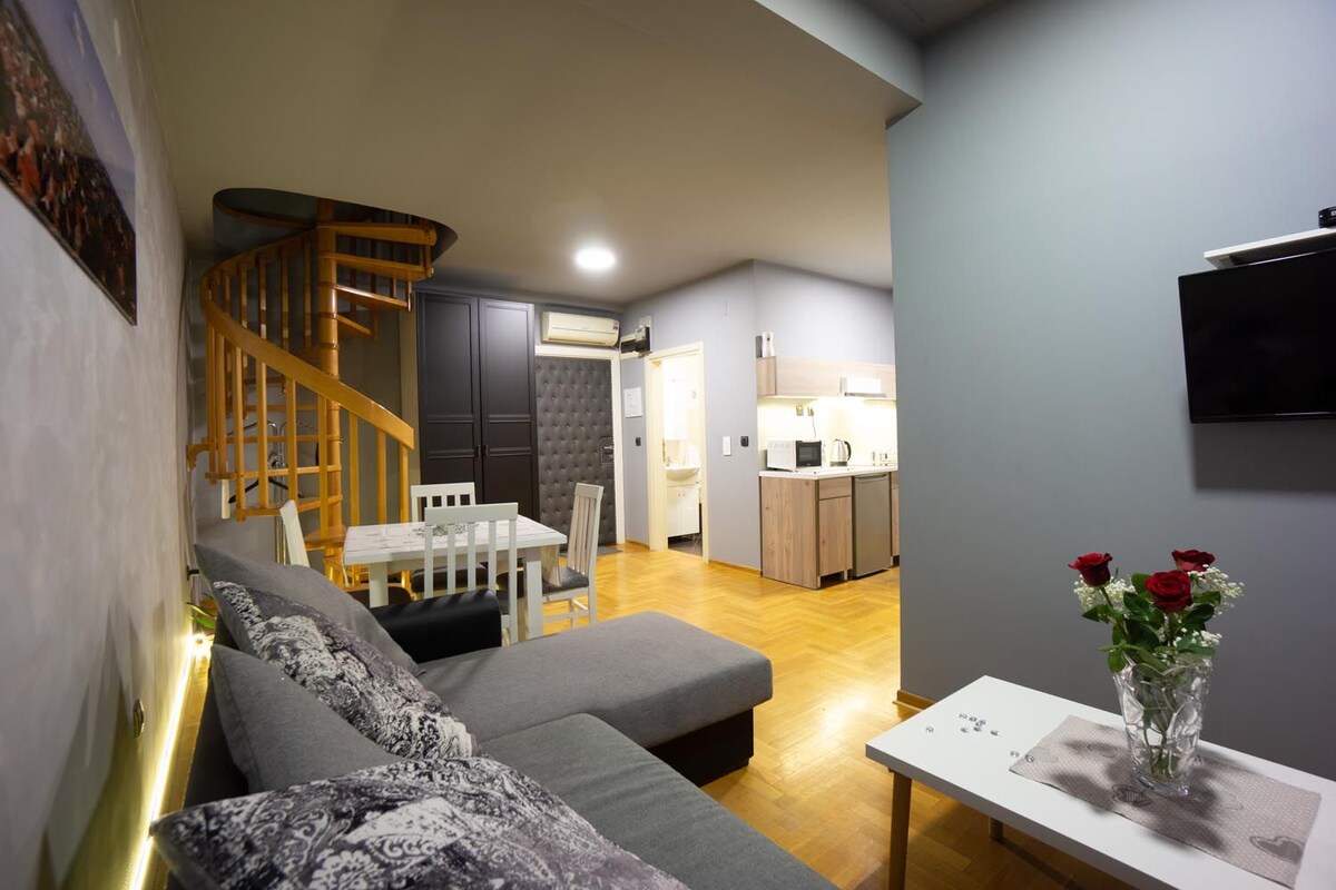 This is a duplex-WHITE APARTMAN- with a special private entrance for 4 people and parking for a car WHITE & Black Ideal for families in the strict center of the old town of the footestrian zone.Location is in an extra zone on the promenade next to the river Sava in the very center of events near the concrete hall and many restaurants of clubs, cafees at 100 meters from the main street Knez Mihajlova 100m.from the park and the festress Kalemegdan 200m from Bg. on the water and the surrounding shopping piers A unique opportunity that you will not forget for the rest of your life Welcome
