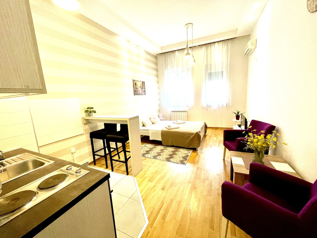 Lejlighed i Beograd, i centrum af byen kun 50 meter fra hovedgågaden KnezMihajlova, hvor alle berømte caféer, barer og restauranter som et væld af seværdigheder i byen. Alle gæster, der bor i lejligheden, skal betale en opholdsskat på 160 RSD per dag.