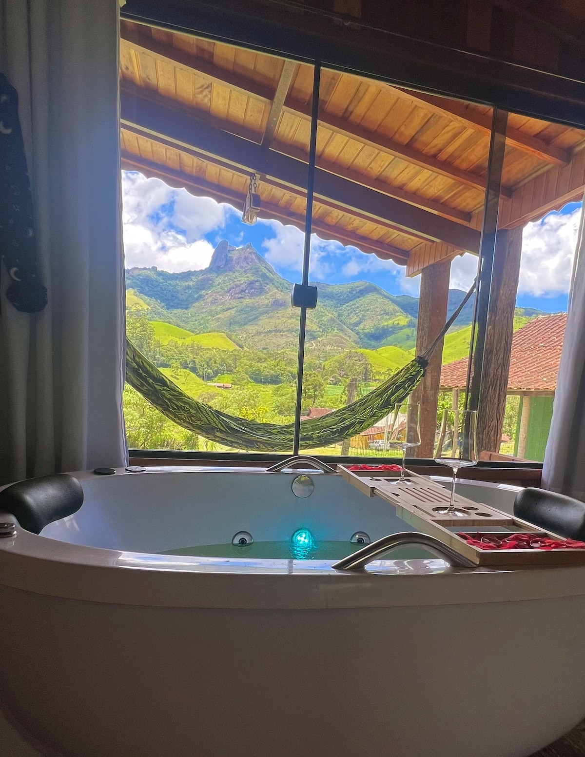 På Refúgio Cabanas i Visconde de Mauá er hver eneste detalje skabt til, at par kan opleve en dyb forbindelse. Hytten kombinerer komfort og natur og tilbyder stilhed, privatliv og charme året rundt. Omgivet af skov og med et vandfald i lejligheden er det den ideelle ramme til at forny energi, sætte farten ned og skabe uforglemmelige minder i en oase af fred og romantik. Parrets oplevelse bliver mere intens med hydromassage integreret med naturen. Den bliver uforglemmelig.