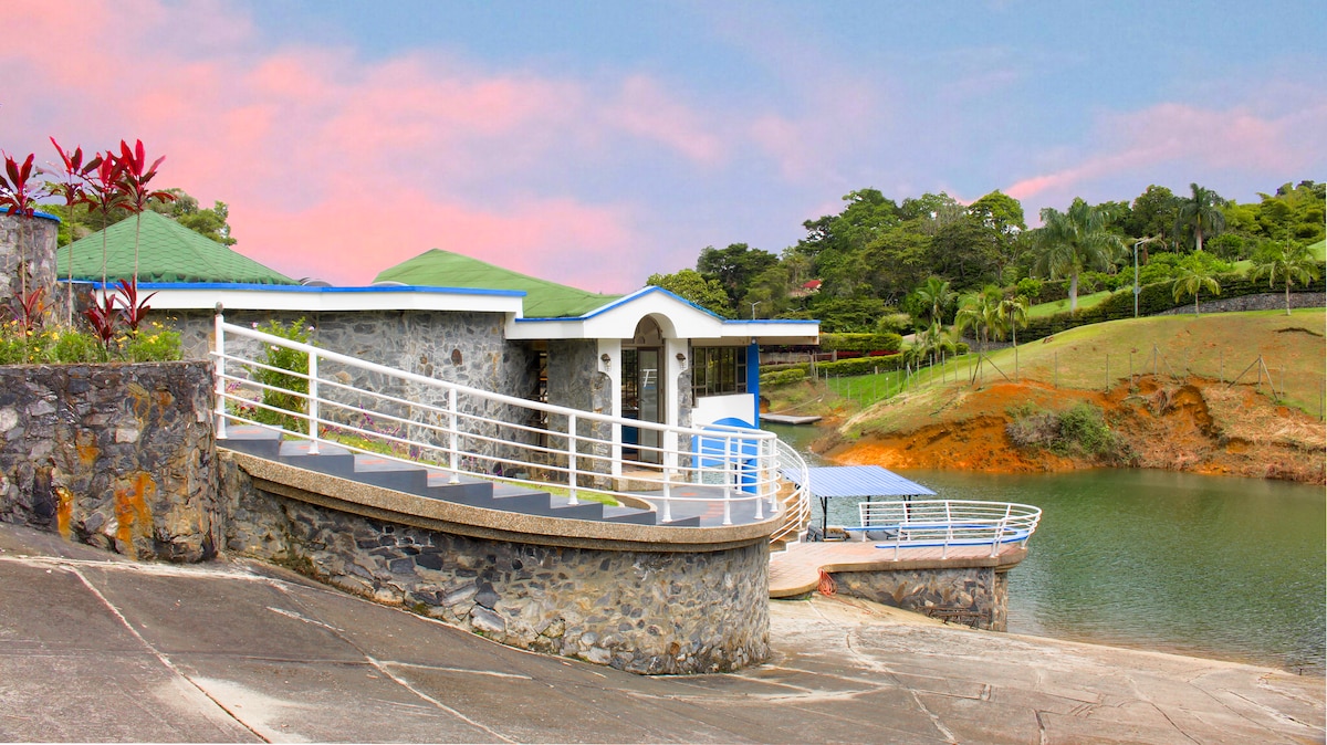 Live a unique experience at a farmhouse facing Lake Calima, with a natural pool, daily hot tub, and FREE kayak and pedal boat. Accommodation for up to 25 guests in spacious rooms, perfect for large groups and family events. Fully equipped kitchen, BBQ, hammocks, ping pong, and a private dock with jet ski and boat rentals to enjoy the lake to the fullest. We focus on providing exceptional customer service to guarantee you the best experience. Pets are welcome.