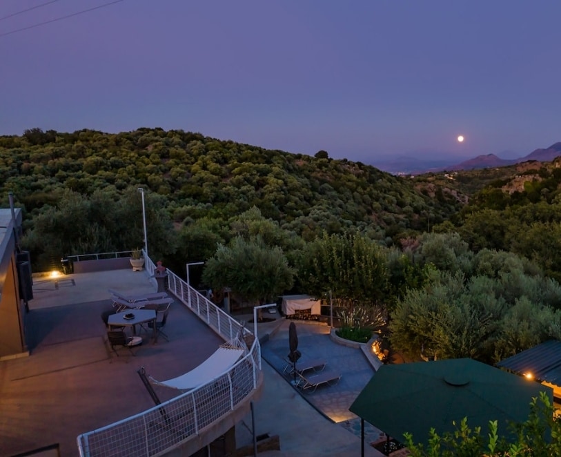 Asteri cottage er en åben planløsning, bijou og smukt designet etværelses hytte. Perfekt til par og bryllupsrejsende. Det boutique-lignende interiør åbner op til store terrasser til spisning og afslapning. Det tilstødende brusebad fører ud fra det beroligende soveværelse til den private dypool, som er 2 m x 4 m i størrelse. Poolen kan opvarmes efter forudgående anmodning. Hytten ligger mellem modne oliventræer på en hektar smuk kretisk landskab og er adskilt fra hovedhuset.