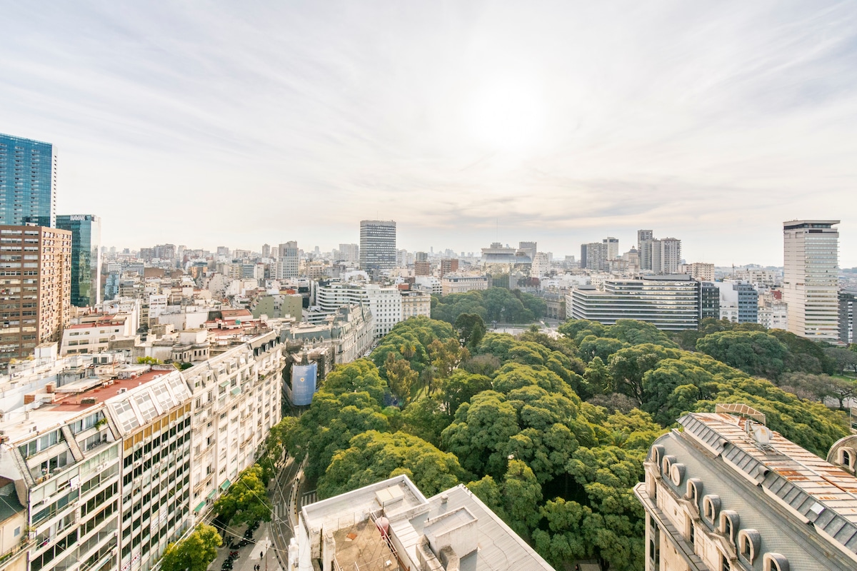 Lejligheden ligger i hjertet af Retiro-kvarteret: et par skridt fra Plaza San Martin og 9 de Julio Avenue og et par blokke fra Teatro Colón. En perfekt beliggenhed til at lære Buenos Aires at kende! Bygningen var tidligere et 4-stjernet hotel, og nu har den et fitnesscenter, et fælles arbejdsområde og døgnvagt. Den ligger på en stille gade med meget god udvendig belysning. Det er meget godt forbundet med metroen (som kun ligger 3 minutter væk), toget og busnetværket.