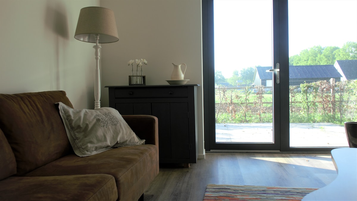 Woonkamer met aparte slaapkamer bij Irene en Han