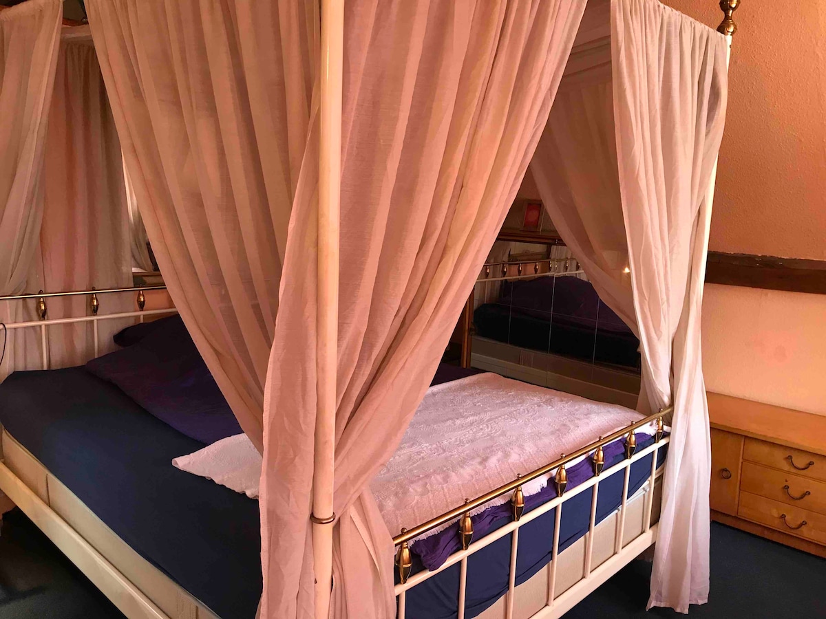 Velkommen til tante Gabi. Et musikalsk inspireret industrielt loft med udsigt over landskabet. Nyd en god tid på 150 fuldt udstyrede kvadratmeter. Boblebadet kan kun bookes mod et ekstra gebyr på 120 euro på grund af den øgede pris. (Anmod venligst på bookingtidspunktet) Fester og arrangementer, der involverer mere end 6 personer, er kun tilladt i undtagelser og efter aftale. Loftet kan kun nås via en stensti samt en trappe.