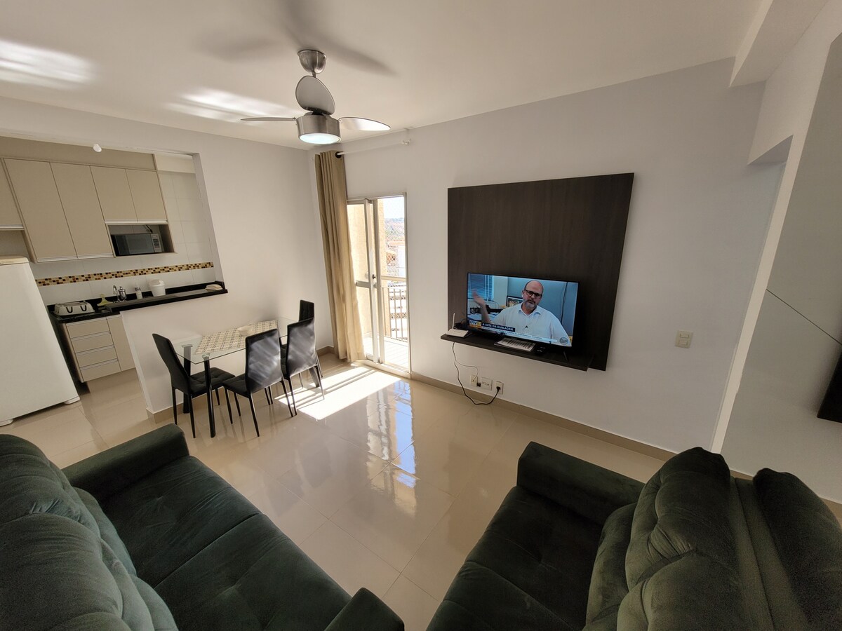 Lejlighed med aircondition, daglig rengøring, roomservice, TV, WiFi, queensize seng, 24 timers reception, swimmingpool, fitnessrum, gratis parkeringsplads med parkeringsservice. Altan og soveværelse adskilt fra stuen. Sengetøj, tæppe og håndklæder er tilgængelige. Ikke kæledyrsvenlig. Tæt på Carrefour, Santa Úrsula indkøbscenter, restauranter, busstation, konventionscenter, gågade, butikker og Choperia Pinguim! INDTJEKNING EFTER KL. 14 OG UDTJEKNING FØR KL. 12