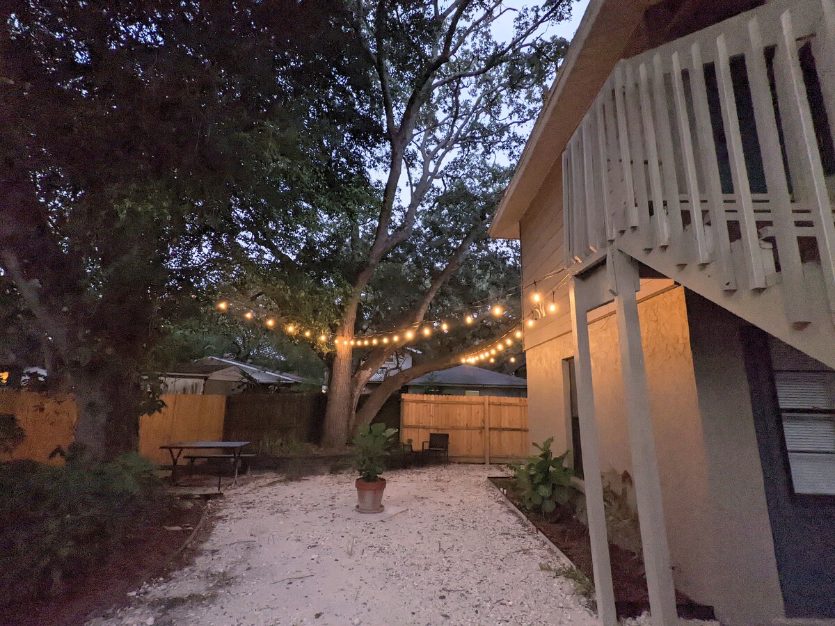 Vores hyggelige boho strandhytte, The Mango House, er det perfekte sted for et par eller en lille familie at slappe af og nyde alle de bedste Sarasota-faciliteter. Det er bekvemt beliggende lige mellem begge Siesta Key-indgange, gåafstand til restauranter, supermarkeder, Trader Joe's, fitnesscenter og en blok fra det populære Walt's Fish Market. Denne smukke bungalow er forhuset i en dobbolig på en stor grund med masser af hyggelige private udendørsområder til at slappe af og nyde alt det vidunderlige Florida-vejr!