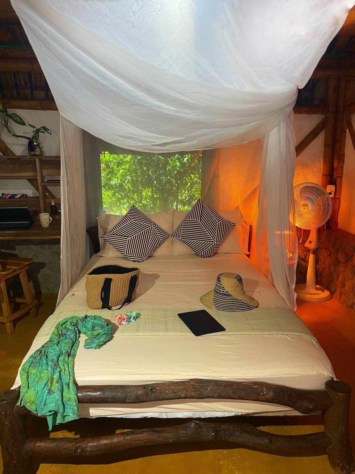 Med en vidunderlig udsigt over havet og bjergene er det et magisk og økologisk sted i udkanten af Sierra Nevada de Santa Marta. Det ligger 5 minutters gang fra stranden og 3 km fra Palomino. Ved siden af hytten er der en kiosk, hvor du kan dyrke yoga eller træne. Det er det perfekte sted at slappe af og nyde naturen, se og opleve en lang række fugle og havet. Jeg byggede selv denne hytte med hjælp fra en lokal kunstner, det er mit store værk, og det er en fornøjelse at kunne dele det.
