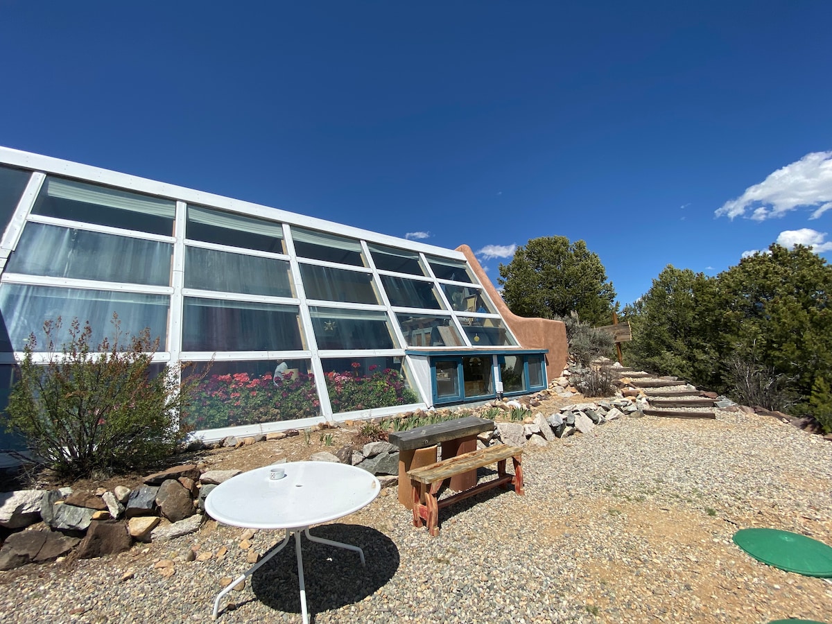 Vi er så glade for at byde dig velkommen til vores spektakulære Earthship! Dette geniale hjem er luksuriøst udenfor elnettet, med solenergi, vandopsamling, integreret drivhus og ekspansivt glas med udsigt over bjerge og stjernefyldte nætter. Vi har endda "overraskende god" WiFi i hele boligen! For Earthship-entusiaster er vores hjem en "global model", toppen af bæredygtigt design og arkitektonisk skønhed uden at ofre komfort.