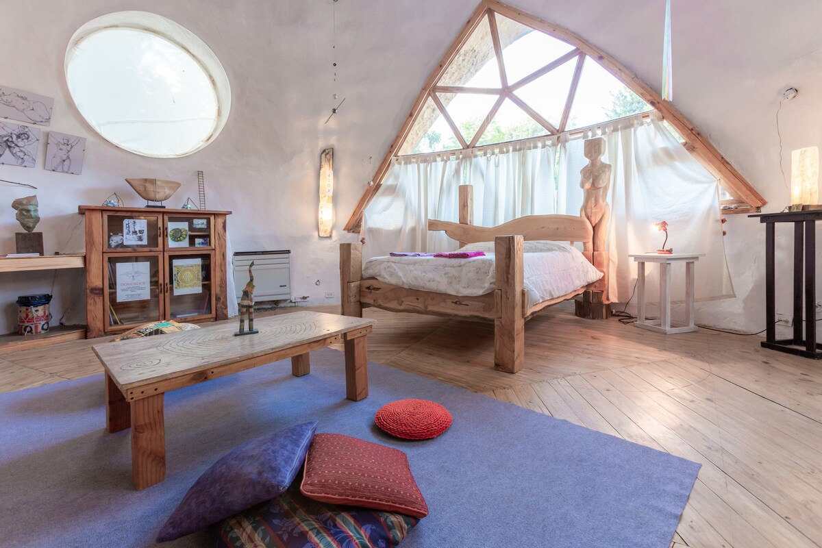 Hytten er kuppelformet. Det giver en følelse af ro, inddrikning, genforbindelse og hvile. Bygget efter Sacred Geometry-mønstre inspireret af sfæren, den mest perfekte form, der findes i universet. Den eneste form, der kan indeholder mange universer i et univers. El Bolsón er en lille by i udvidelse og vækst, Eiwa Domos ligger i et beboelseskvarter, kun 2,2 km fra centrum af El Bolsón og kun 200 meter fra Route 40. Op til 4 personer