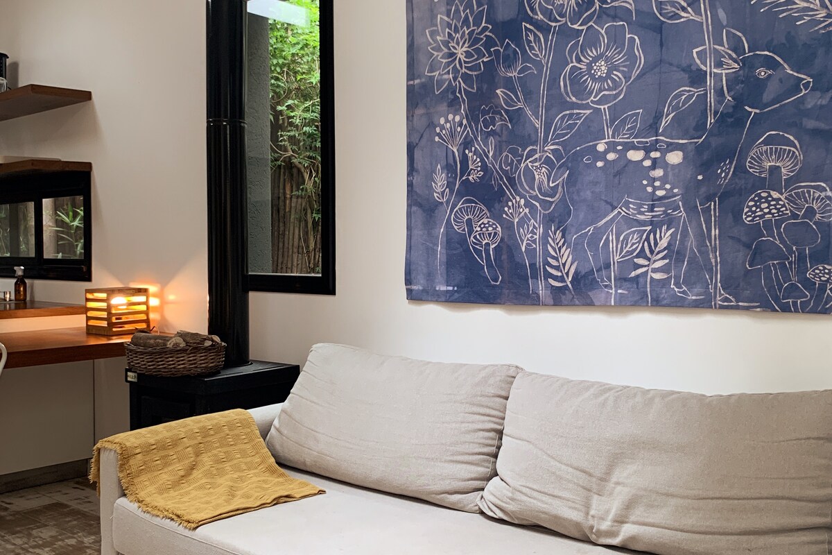 ANANÁ Cabin – hippie-chic i Tigre Delta, kun 20 minutter fra byen. Den ligger ved den fredelige Rompani Stream, omgivet af natur, og har en privat mole, der er ideel til afslapning, svømning eller til at se både og roere passere. inkluderer en grill. Ideelle omgivelser til senderismo eller kajaksejlads! Kun 100 meter fra den offentlige bådstop (kører hver time) og 100 meter fra en købmands- og restaurantbar.