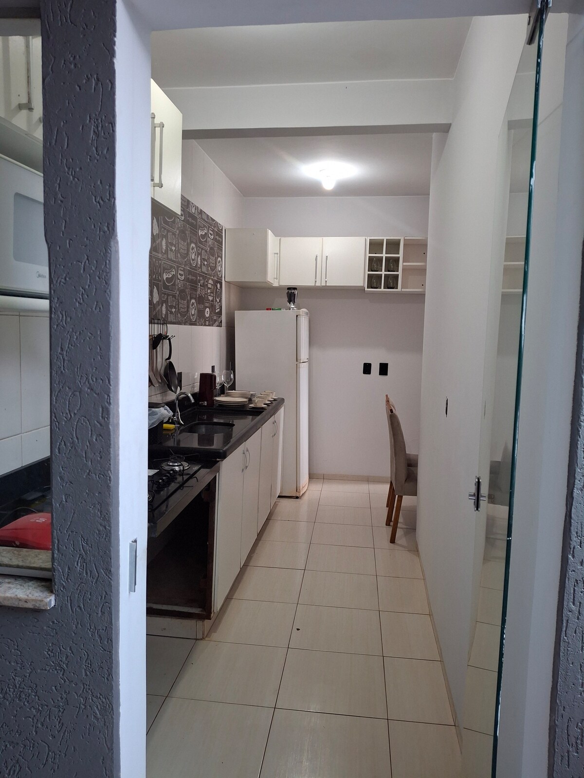 Du vil være 50 meter fra interlagos park, med legeplads, udendørs fitnesscenter og baner, ideel til en gåtur! kitnet med plads til op til 3 personer, med udsigt over søen, 500 meter fra Almeida Rodrigues College og 800 meter fra Unirv, dekoreret med al den hengivenhed, så du kan føle dig hjemme.