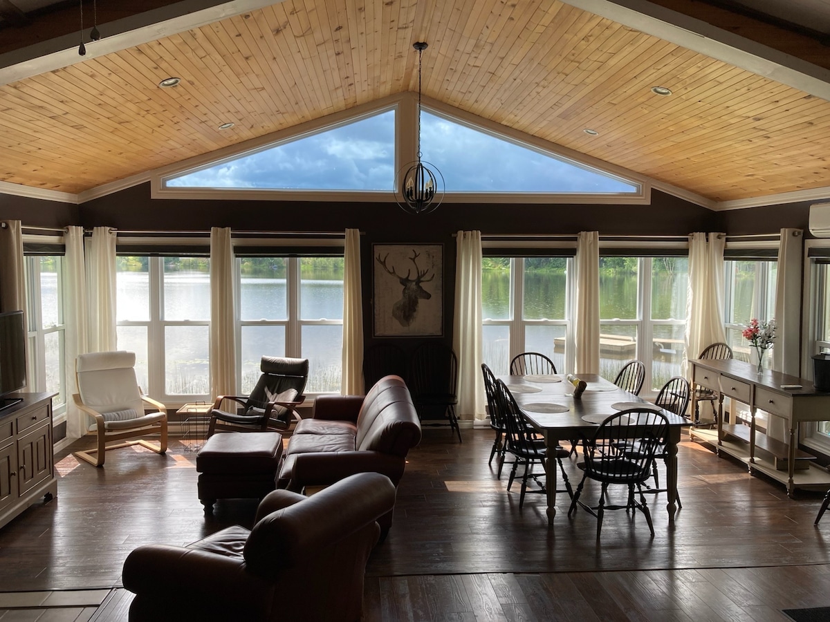 Naturen i sin reneste form! Vi tilbyder dig en nyrenoveret hytte med en lille helt privat sø og et stort stykke jord, hvor du kan gå på private stier. Hvis du nogensinde ønsker at forlade dette paradis, er Tremblant 45 minutter væk, Omega Park 25 minutter, Lac Simon 15 minutter, Gatineau 1 time og Montreal 1 time 30 minutter. Alt er blevet gennemtænkt for at sikre din lykke! Spa, sauna, arbejds- eller afslapningsområde, kæmpe familiestue med shuffleboard-bord. Et sted, hvor du kan skabe minder!