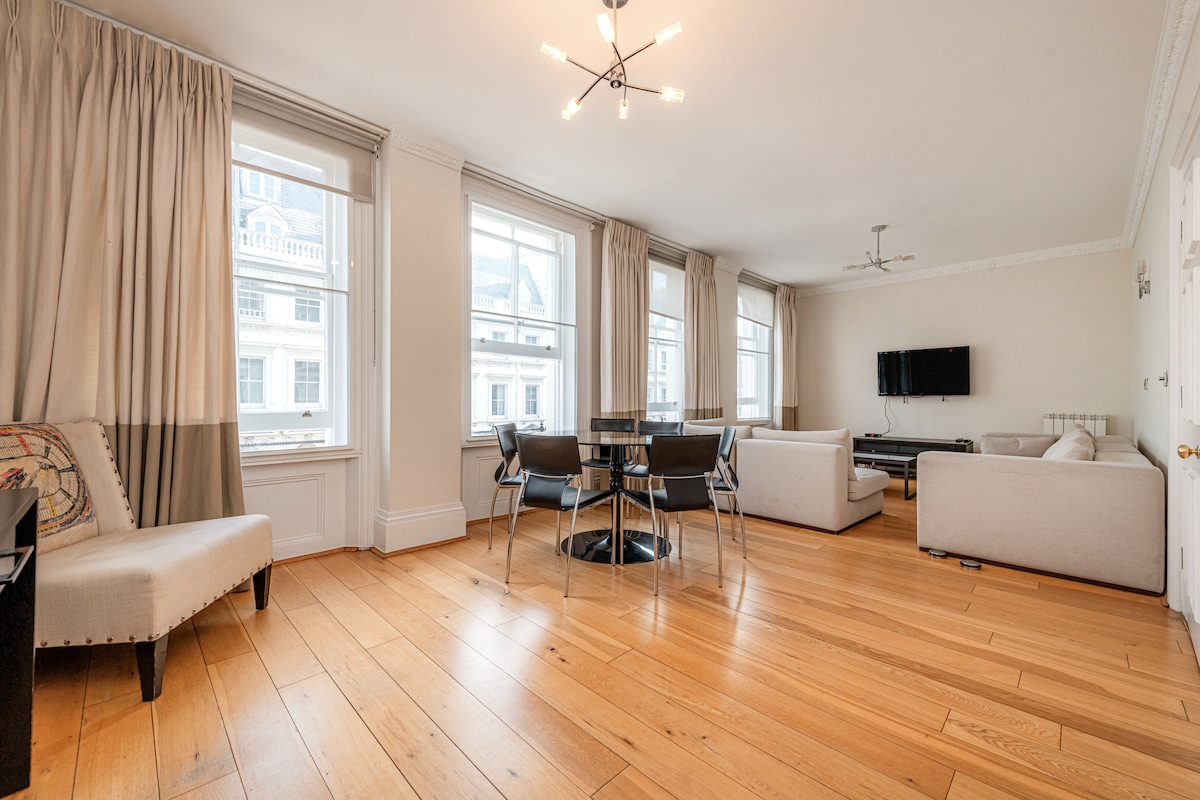 Lys serviceret lejlighed med masser af naturligt lys, fremragende beliggenhed på en sidegade 1 minuts gang fra Bond Street-metrostationen, perfekt til shopping, da den ligger mellem Oxford Street og Bond Street (de to mest ikoniske shoppinggader i London). Perfekt til turister, da den ligger i hjertet af det centrale London i gåafstand til Piccadilly Circus, Oxford Circus, Big Ben og Covent Garden. Dette særlige sted giver dig garanteret den ægte London-følelse.