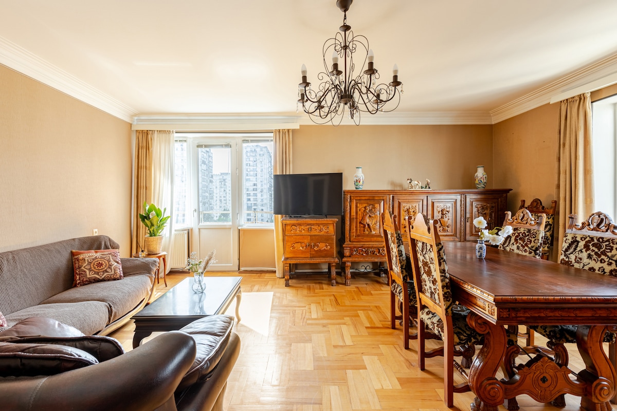 Lejlighed med højt til loftet og stort soveværelse i det centrale prestigefyldte boligområde i Tbilisi. Med to balkoner med persienner. Lejligheden ligger ved siden af Park Mziuri, gaden er meget grøn. Det er behageligt for både gåture og transport. Her er caféer, restauranter, indkøbscentre og banker. Du kan gå i det gamle Tbilisi, og du kan komme til skildpadde-søen med svævebane. Fælles indgang til den anden hyggelige lejlighed.