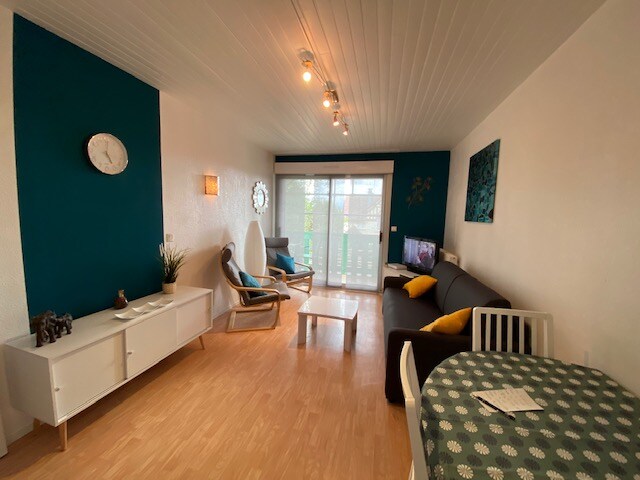 35 m2 lejlighed med en smuk solrig terrasse. Mod syd. Stueetagen lejlighed. Beliggende i nærheden af den termiske kur. Lejligheden har privat parkering, kælder og fælles cykelrum. Lejligheden er fuldt udstyret, gratis WiFi. Vs vil finde et soveværelse med elektrisk dobbeltseng, et helt nyt badeværelse, et separat toilet, en gang med sit store opbevaringsskab, et køkken og en stue. Meget stille bolig for at have boet der.