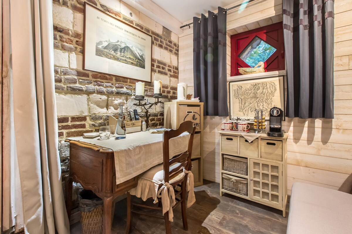 Vi tilbyder en lejlighed, der er blevet fuldstændig renoveret med omhu, og som kan rumme 2 personer og en ekstra person takket være en sofa Clic-Clac. Meget varmt og hyggeligt med et tv-hjørne, et badeværelse med bruser og et fuldt udstyret køkken. En lille uafhængig lukket udendørs terrasse. Meget godt beliggende, tæt på alle bekvemmeligheder (butikker og motorvejsafkørsler, bus) Morgenmad kan fås på anmodning.
