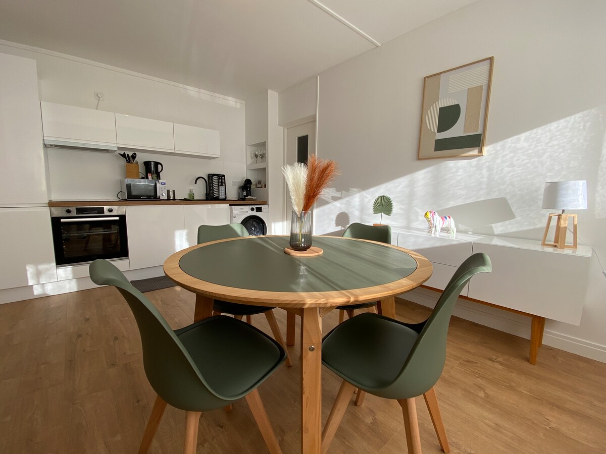 Smuk 3-værelses lejlighed med 4 serviceydelser, ⭐️ renoveret i 2019 i en ren og varm stil. Du vil være tæt på Rennes gamle bydel og François Mitterand-vej (lille Champs-Élysée) Du vil sætte pris på lejligheden for dens ro og dens grønne omgivelser, dens lys, dens indrettede indgang, dens fuldt udstyrede køkken, dens moderne badeværelse, dens 2 smukke soveværelser og dens rummelige stue med udsigt over balkonerne. Du har en privat parkeringsplads lige nedenunder boligen.