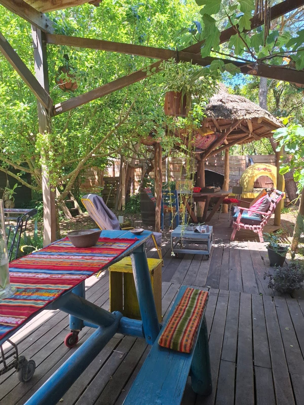 Værelse med privat badeværelse, meget tæt på stranden, med udsigt til en udendørs terrasse med pergola, værelset har udsigt til haven, der er også en anden pergola med paraguayanske hængekøjer. Det ligger på samme grund som vores hus. Det er en renoveret skibscontainer, plus en tilbygning, hvor der er et skrivebord og et komplet badeværelse. Det er meget lyst og godt ventileret. I løbet af skoleåret var det vores ældste datters værelse, i år tog hun på studier, og det bliver vores studie.