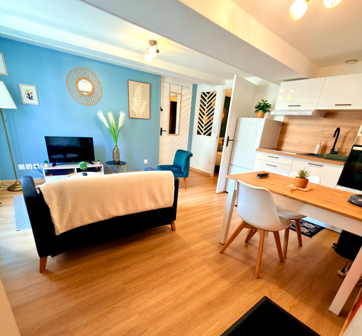 I centrum ligger vores studio i en stille lejlighed i stueetagen med udsigt over en lukket indre gårdhave. 5 minutter fra togstationen kan du gå derfra og nyde barerne og restauranterne i centrum. Mulighed for at leje min 500 fiat om nødvendigt. Studiekøkkenet tilbyder dig også alle muligheder for madlavning og for at spise på stedet. Møbleret klassificeret 2 stjerner for en kapacitet på 2 personer af Departmental Committee of Jura