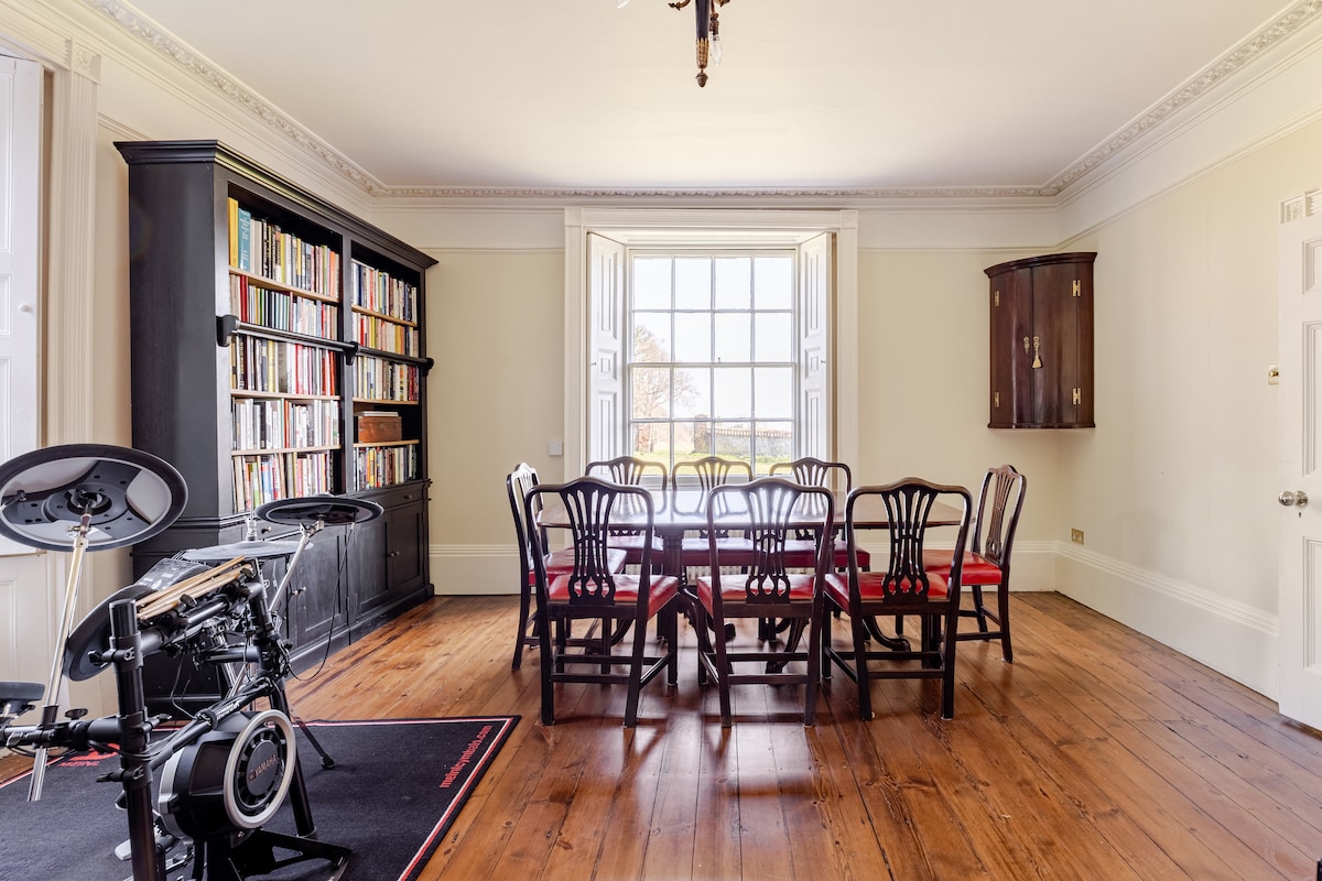 North Transept er en del af vores ombyggede victorianske gotiske kirke. Vi har selv lavet alle ombygningerne – de høje lofter og smukke gotiske vinduer gør det til et unikt sted. Det ligger i en lille landsby i en smuk skjult dal omgivet af marker. Der er dejlige gåture fra døren og masser af lokale dyr, herunder rådyr og muntjakhjorte, fasaner, røde glenter og ugler. Det er nemt at komme til en lang række lokale attraktioner som Lacock og Avebury og kun en halv time til Bath.