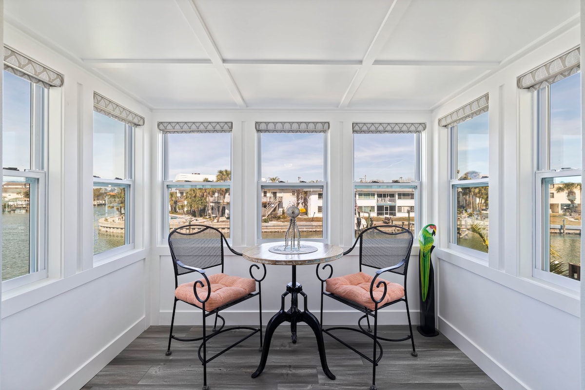 - Resort Style Water front - Stand alone - Hot tub - Sunrise / sunset views on dock - free Kayaks - Internet / YouTube cable - 65” smart TV - Spacious Bedroom with king size bed, walk in closet and flat TV - Washer and Dryer in unit - Designated work space -Pet friendly - Fenced private patio - Free 2 cars / Boat Parking. - Central location ( beaches, restaurants, Tampa, St Pete’s, safety Harbor, Dunedin - 11 minutes from Ruth Eckerd event Hall - Pristine clean - Coffee station - Dining area