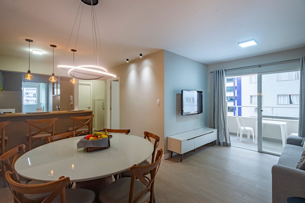 Apt with the best view of Balneário Camboriú, to the sea (front and total view of all the waterfront), to the forest next door (with trails), to the condominium pool (accessible to guests). You will be in a difficult choice to be dazzled and delighted! Oh, and still has the very well equipped apt, with everything new: 32 inch TV. Smart, Wi-fi, refrigerator two doors, air conditioning, stove, microwave, sofa bed, hair dryer, iron, etc. And with garage. I doubt the best value for money