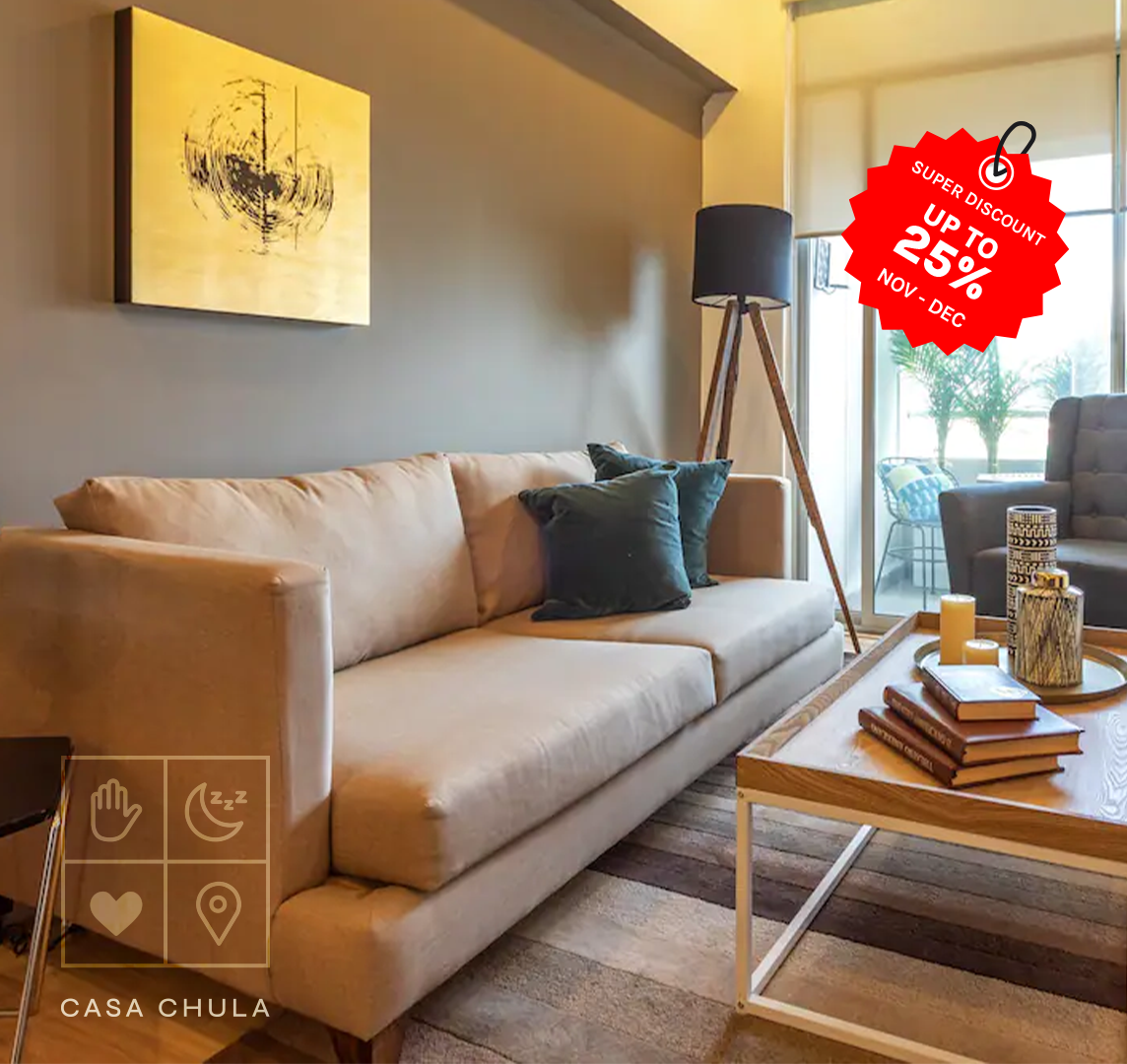 Denne unikke og moderne lejlighed, der er fuldt udstyret, har været mit kreative tilflugtssted og hjem. Da jeg besluttede at være værtinde, indrettede jeg den med kærlighed og følelser og tænkte på at give komfort og varme til hver enkelt gæst. Den ligger i et beboelsesområde, hvor du kan nyde: Opvarmet pool i taghaven med panoramaudsigt over byen. Sikkerhed 24/7 Parkeringstjeneste inde i bygningen En gratis parkeringsplads Snackbar med mad- og drikkeservice Træningsrum