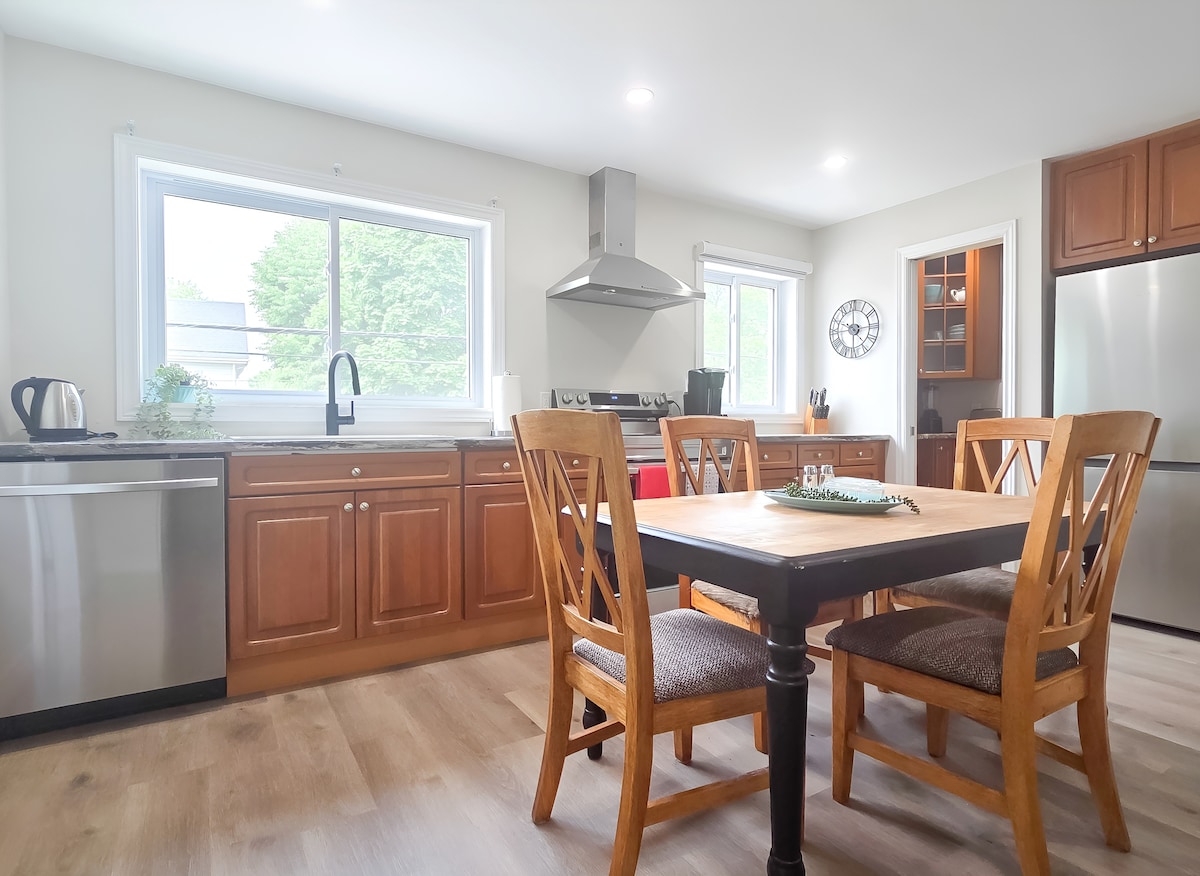 Smuk landlejlighed beliggende i et skovområde mellem Chatham og London. Lejligheden er adskilt fra hovedhuset og har en rummelig terrasse omkring den med udsigt over skoven. Der er også en lille hytte til det andet soveværelse, der er tilgængelig fra marts til oktober. Der er en stor fælles pool, udendørs sauna, gård og vandrestier i nærheden til naturelskere. Lejligheden og hytten er fuldt møbleret, og begge har Wi-Fi. Den ligger omkring 15 minutter fra Rondeau-provinsparken.