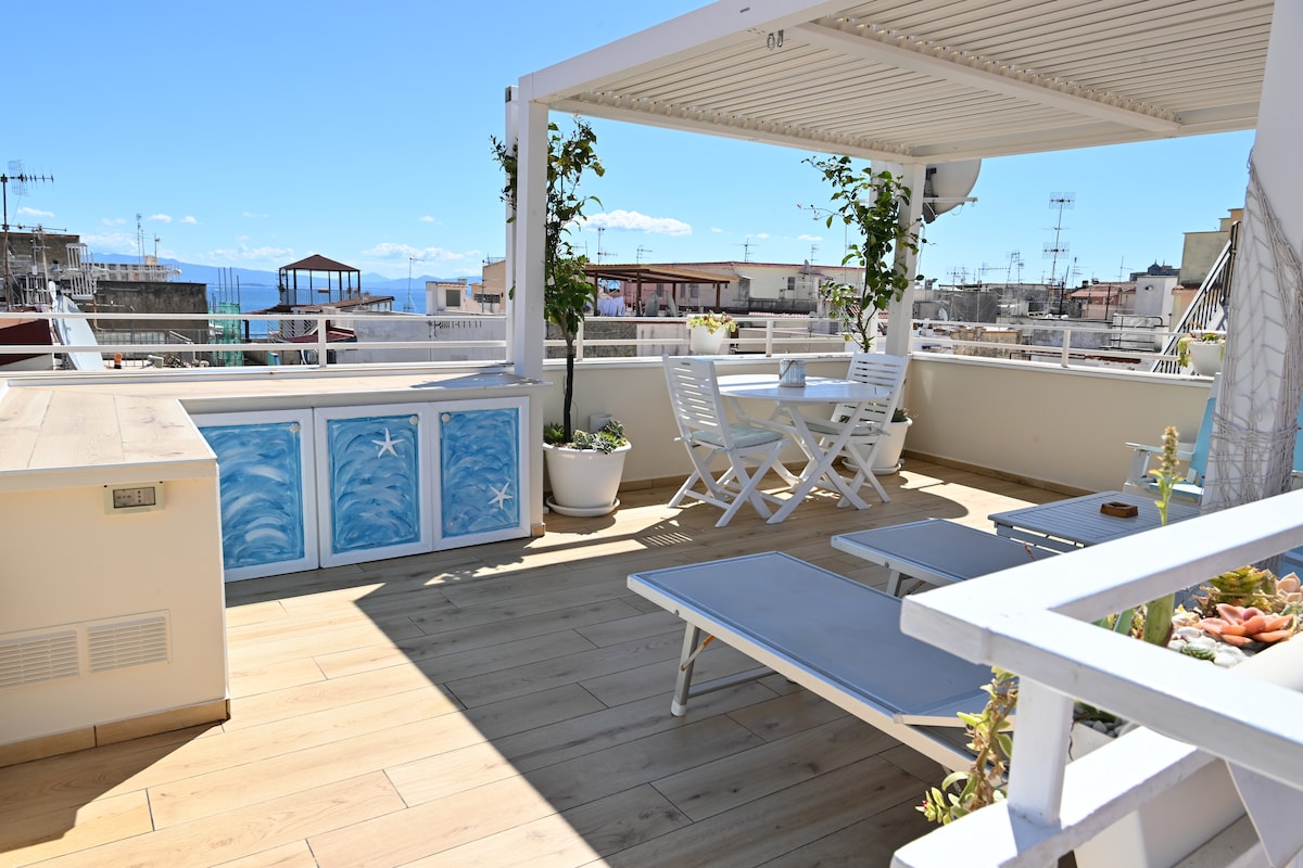 Private House with 180° sea view. Perfect for families (max 5 persons) or couple. Services included: • Private parking with automatic gate • Direct access to the beach (3 min walking) and to the historic center. • 2 badrooms: king size and twin room. • Bathroom with shower. Shampoo included • Sheets and towels included • Kitchen equipped with all comforts and utensils • Terrace sea view with solarium CITY TAX TO PAY LOCALLY