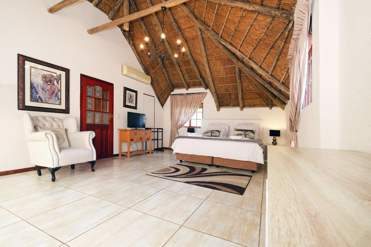 Privat hytte beliggende på 1 hektar lille bedrift, der grænser op til privat reservat med vandrestier og mountainbike-stier. De rolige omgivelser skaber en følelse af at være på en gård, selv om man er i udkanten af byen. Omfattende have med pool, braai-område og stoep med pejs til afslapning og afstressning. 10 minutter til motorvejene N1 og N4. 5-10 minutter til hospitaler, indkøbscentre, fitnesscenter og restauranter. Livemusik og dans? Vi er 10 minutter fra Padstal og 3 minutter fra Landje.