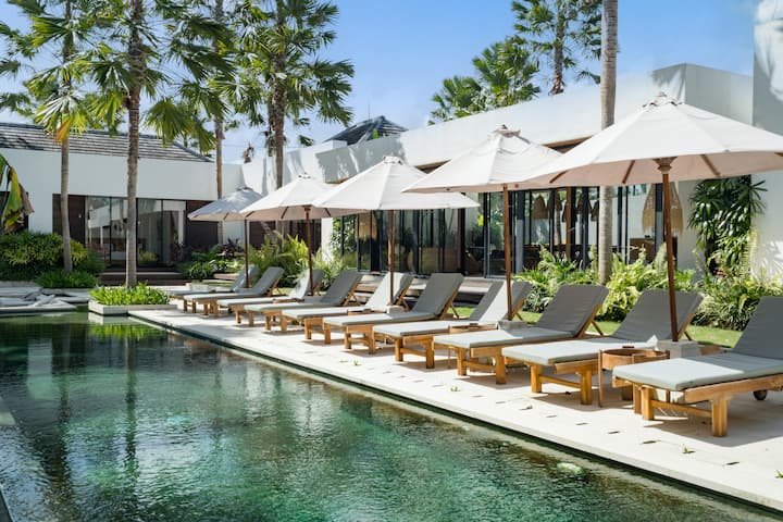 Alle 5 soveværelser er udstyret med aircondition, tv, værdiboks og private badeværelser. Trægulve og store skydedøre af glas giver dig den ultimative hyggelige følelse, mens du bor her. Nyd privatlivets fred i dit værelse, når du har lyst. Et lille ekstra SPA-VÆRELSE indeholder 2 massageborde, og villaens vært på stedet kan arrangere massageterapeuter til at komme til villaen når som helst. Dette er ren luksus, så du kan nyde dit ophold fuldt ud!