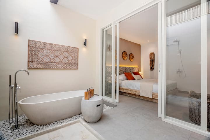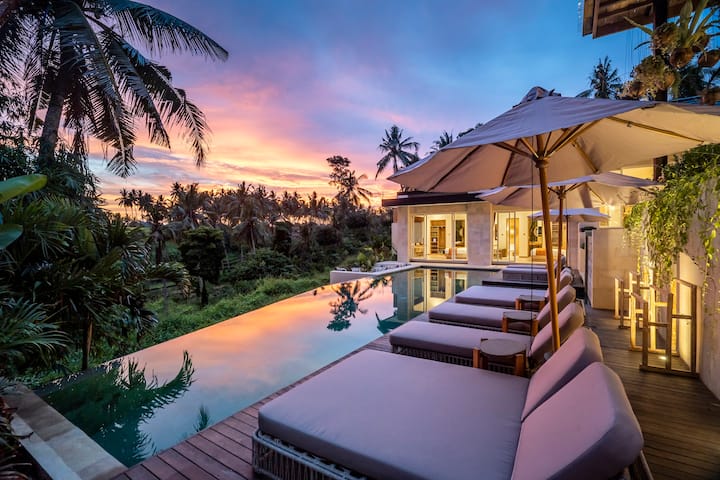 Fordyb dig i naturen, Balis skønhed og de beroligende lyde omkring dig. For solnedgang vil du få de smukkeste farver i nærheden og kan nyde det i det udendørs loungeområde ved poolen eller endda fra det store panoramavindue i et af soveværelserne.