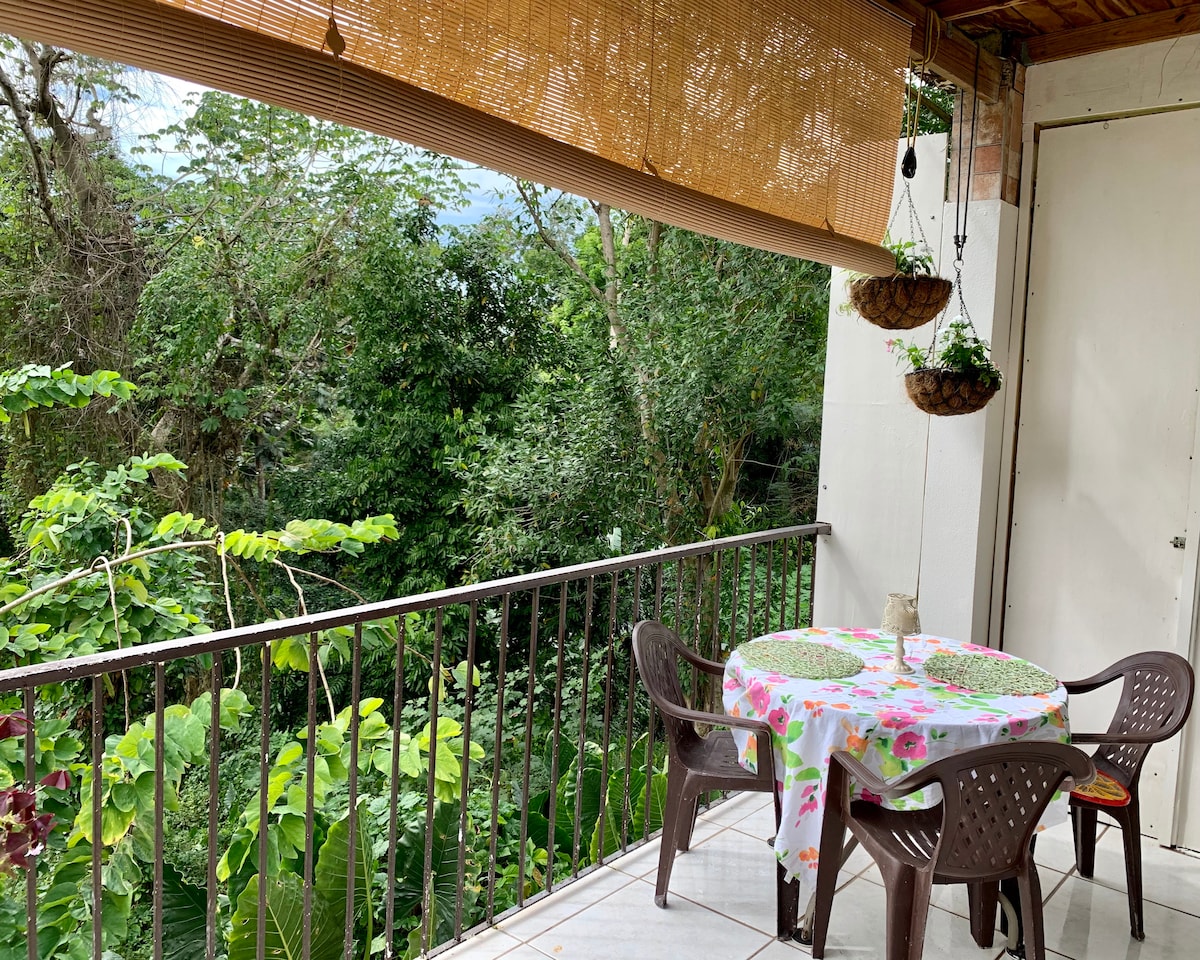 Mit hus og lejligheden ligger i den smukke lille by Hormigueros, vest for Puerto Rico. I stueetagen i mit hus ligger et studie. Vi har installeret en vandtank. Ved ankomsten kan du nyde en grøn udsigt over naturen fra balkonen. Lejligheden har en separat indgang, hvor du kan parkere din bil. Det er et roligt sted og også super sikkert. Vi bor i en blindgyde, hvor der er lidt trafik. Sengen i atelieret er en kingsize.